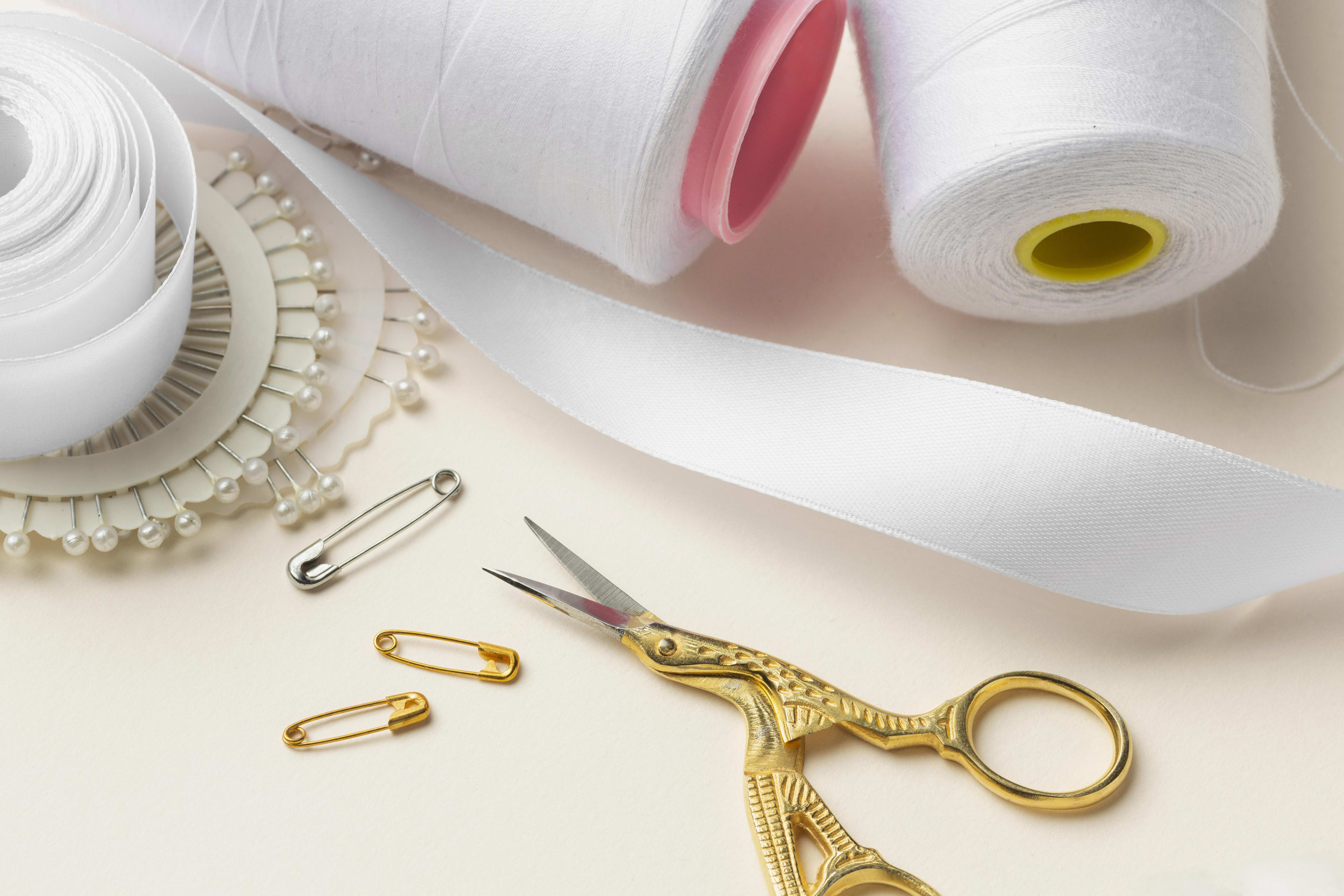 Нежные пудровые изображения ниток и иголок